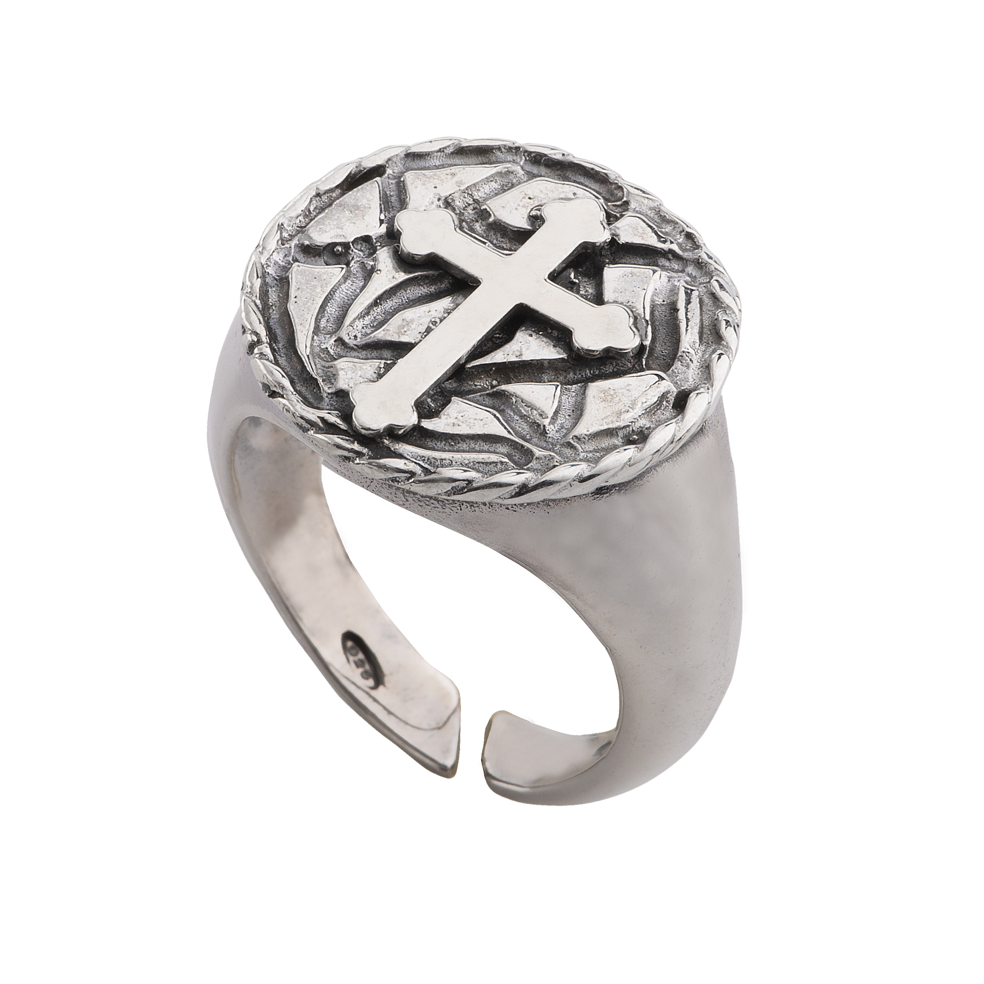 Lavorazione artigianale in argento brunito con croce. Argento 925 brunito