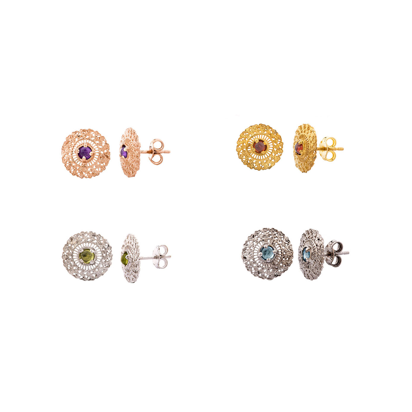 Orecchini con fantasie di filigrana e pietre naturali incastonate realizzati in argento 925; altezza orecchino 12 mm